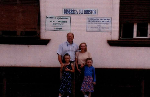 My family and I standing in front of the church my dad pastored. I’m the little girl on the left. Photo courtesy of Brianna Langley