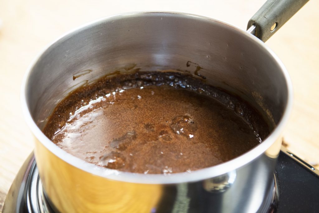1. Remove from heat and stir in chocolate until smooth.