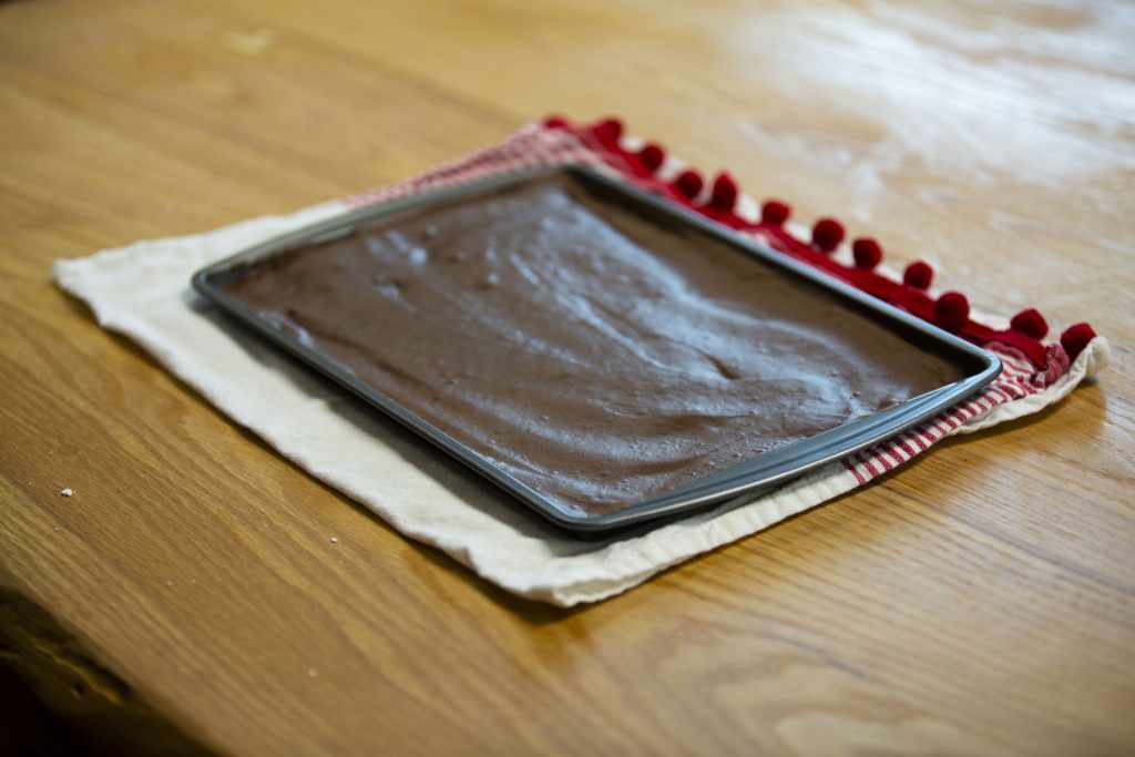 1. Preheat oven to 350 F and butter a 9×13 jelly roll pan or line it with parchment paper.