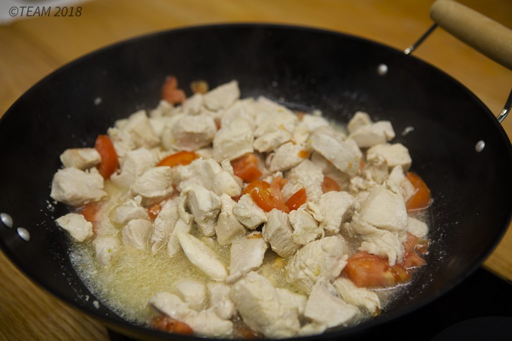 3. Add half of the tomatoes, and let them simmer until mushy.