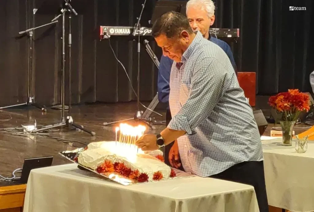 Perhaps the highlight of the celebration is a tradition that the Moores began way back in Colombia. A cake is made in the shape of a cross, and everyone who has trusted Christ as their Savior that year puts a candle on the cake. “We had 20 candles on our cake this year,” Keith shares. “It’s a tangible way for us to see: Are we just collecting people? Or are we really reaching people for Jesus?”