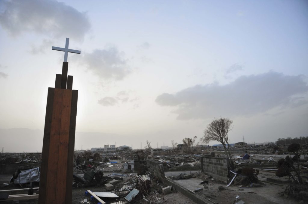 A cross remains in the aftermath of a tsunami in Japan. Photo by TEAM