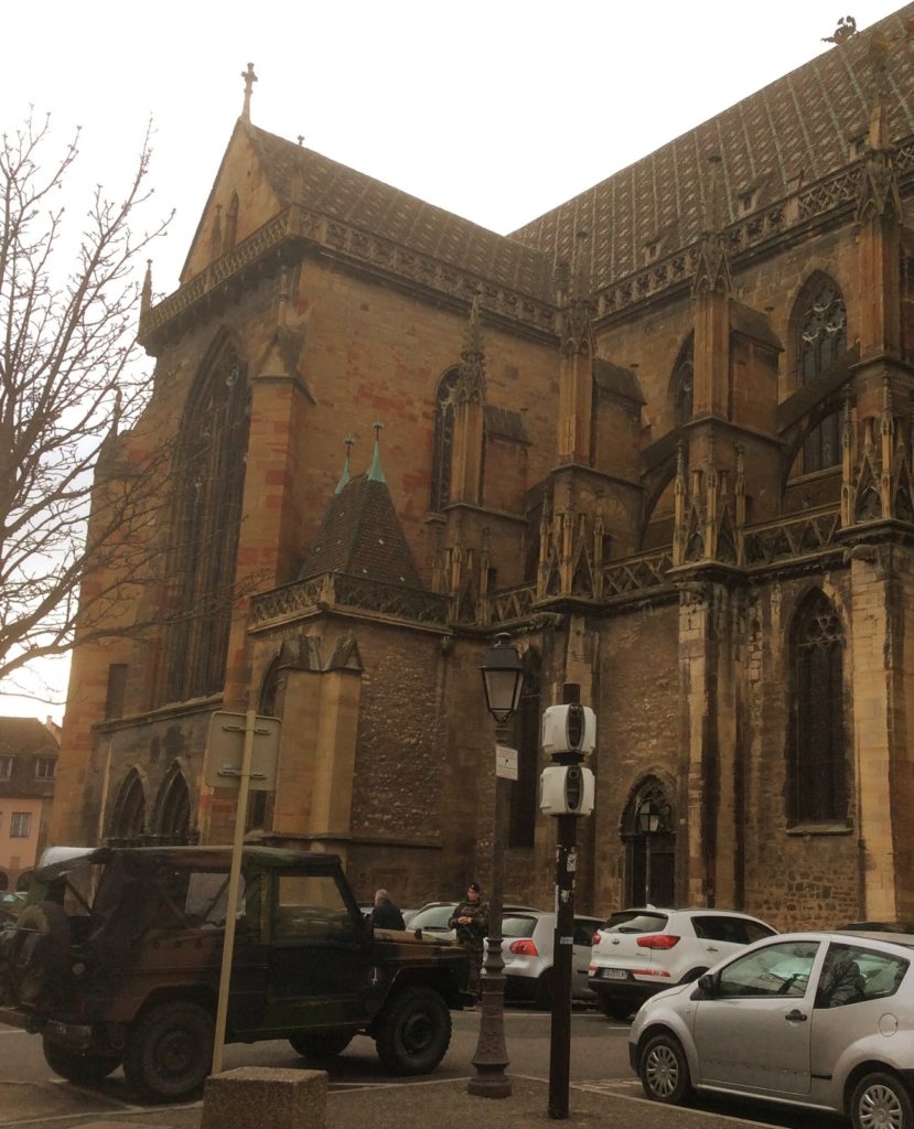 Église Saint-Martin in Colmar, France with armed guards after the Paris terrorist attacks. Photo by Anna Key